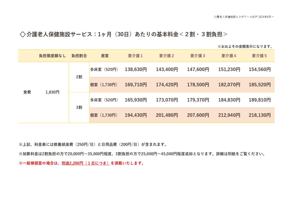 入所・4床室利用 介護度:要介護3(1割負担) 限度額負担証:無し
