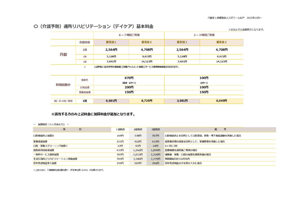 介護保険負担分 4,014円 + 加算分 300円~500円