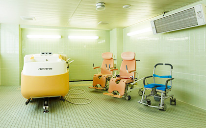 ご希望があればスタッフがサポートしながら、施設の特殊浴槽(チェアー浴)、一般浴槽に入っていただけます。